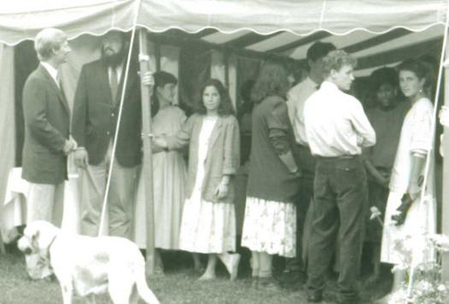 That's Mark holding on to the tent pole at my wedding in August 1989. He's talking with Richie.